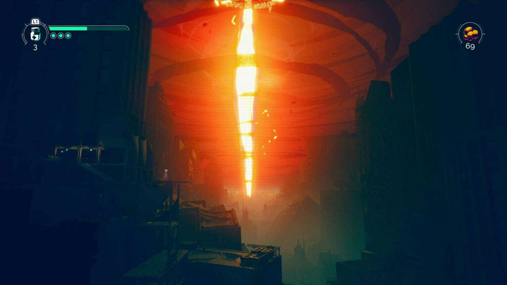 L’exploration, pilier du Metroidvania, est malheureusement le point faible. La ville de Sanzu est tentaculaire et visuellement sombre, mais la navigation est rendue pénible par un système de carte minimaliste. On passe un temps conséquent à tourner en rond, à se demander quelle nouvelle capacité débloquée permet enfin d’accéder au marqueur d’intérêt. Pour un jeu qui se veut viscéral, le « slog » (la corvée) est trop présent dans le segment exploration.