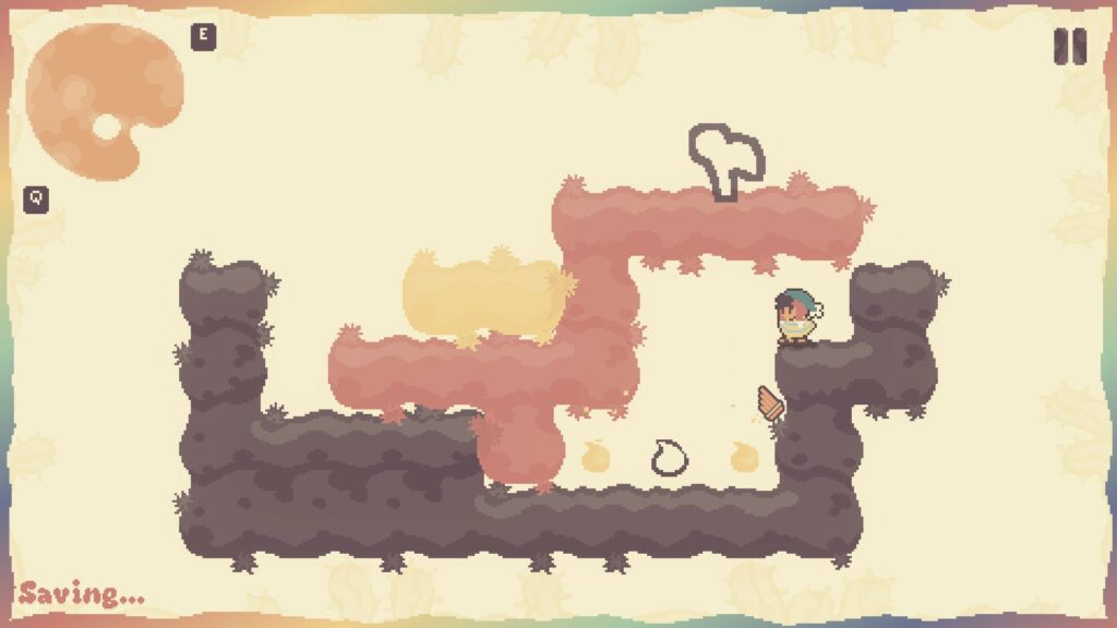 Mais un joli jeu ne fait pas nécessairement un bon jeu. C’est là que le gameplay entre en scène avec une proposition intrigante : le pinceau chromatique. Contrairement à un Chicory où l’on colorie pour le plaisir visuel, ici la couleur a une fonction physique tangible. La mécanique de la démo repose sur un principe de « poids » des couleurs. Appliquer une teinte claire peut faire léviter un objet, tandis qu’une couleur sombre l’alourdira, le faisant s’écraser au sol ou activer un mécanisme de pression. C’est malin, intuitif, et cela ouvre la porte à des puzzles logiques qui dépassent le simple « trouver la clé pour ouvrir la porte ». Le level design entrevu dans cette version d’essai joue intelligemment avec cette verticalité, forçant le joueur à observer son environnement non plus comme un obstacle figé, mais comme une toile malléable.