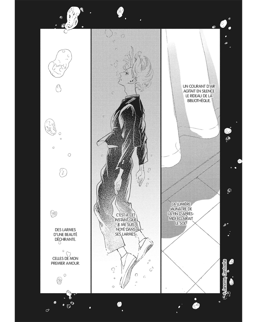 La patte graphique de Jyanome : Déjà bien connue au Japon (et appréciée pour Twilight Outfocus), la mangaka offre ici des planches d’une grande finesse. Les scènes sensuelles servent le récit et illustrent l’intensité des sentiments que les mots ne peuvent exprimer.