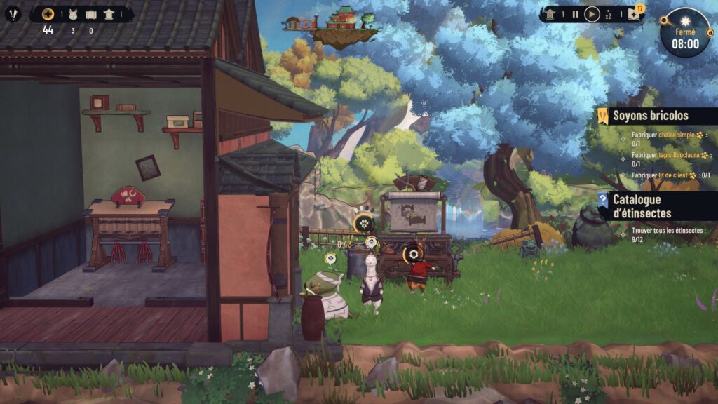 Dès les premières minutes, le constat est sans appel : graphiquement, c’est une petite merveille. La direction artistique transpire l’amour pour le studio Ghibli par tous les pores. C’est propre, c’est coloré, et les animations des personnages et des décors ont ce côté « fait main » qui donne immédiatement envie de se blottir dans l’univers. On est sur une île flottante au milieu de l’espace, et pourtant, tout semble organique et vivant. C’est un régal pour la rétine, surtout si vous êtes sensible à cette esthétique anime nostalgique.