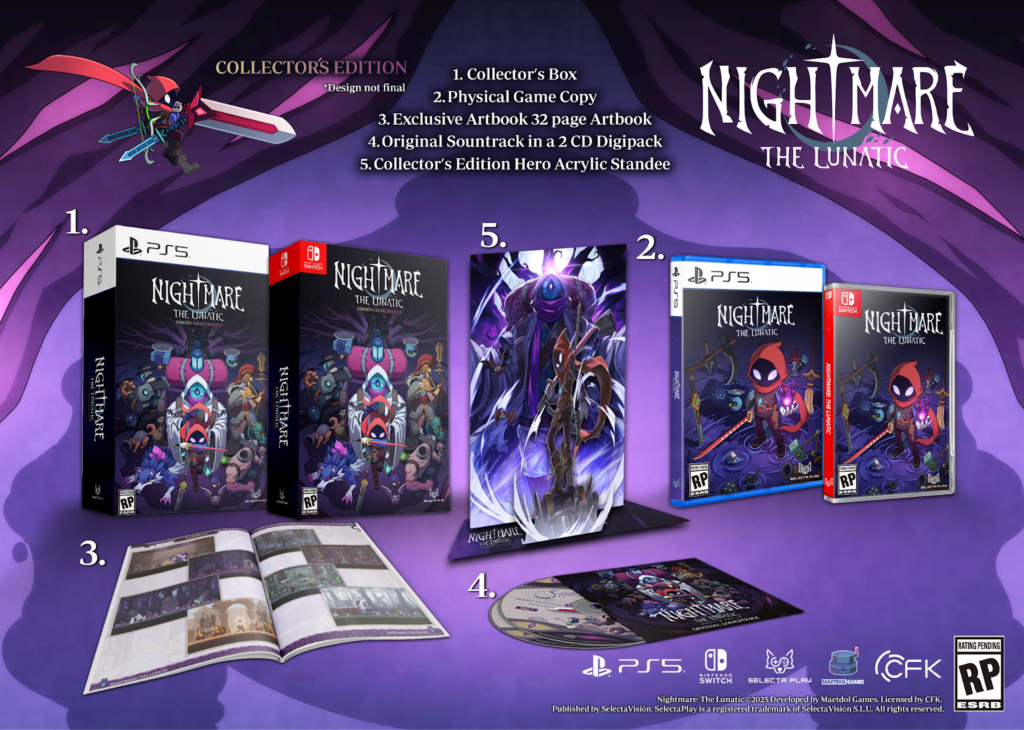 Le paysage du roguelite d’action s’apprête à accueillir un nouveau prétendant de poids sur consoles. L’éditeur SelectaPlay, en collaboration avec CFK et le studio Maetdol Games, vient d’officialiser l’arrivée de versions physiques pour Nightmare: The Lunatic. Prévu pour l’été 2026, le titre bénéficiera d’éditions Standard et Collector sur PlayStation 5 et Nintendo Switch.