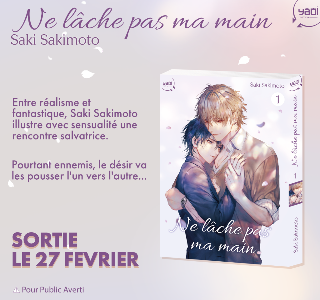 Le premier tome de Ne lâche pas ma main (© 2021 Sakimoto Saki, ShuCream) sera disponible dès le 27 février dans toutes les bonnes librairies au sein de la collection de Taifu Comics.
