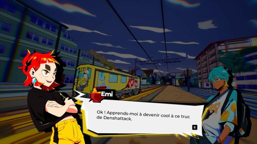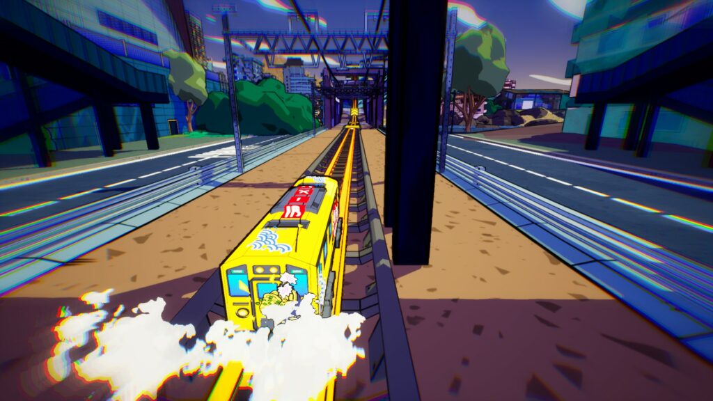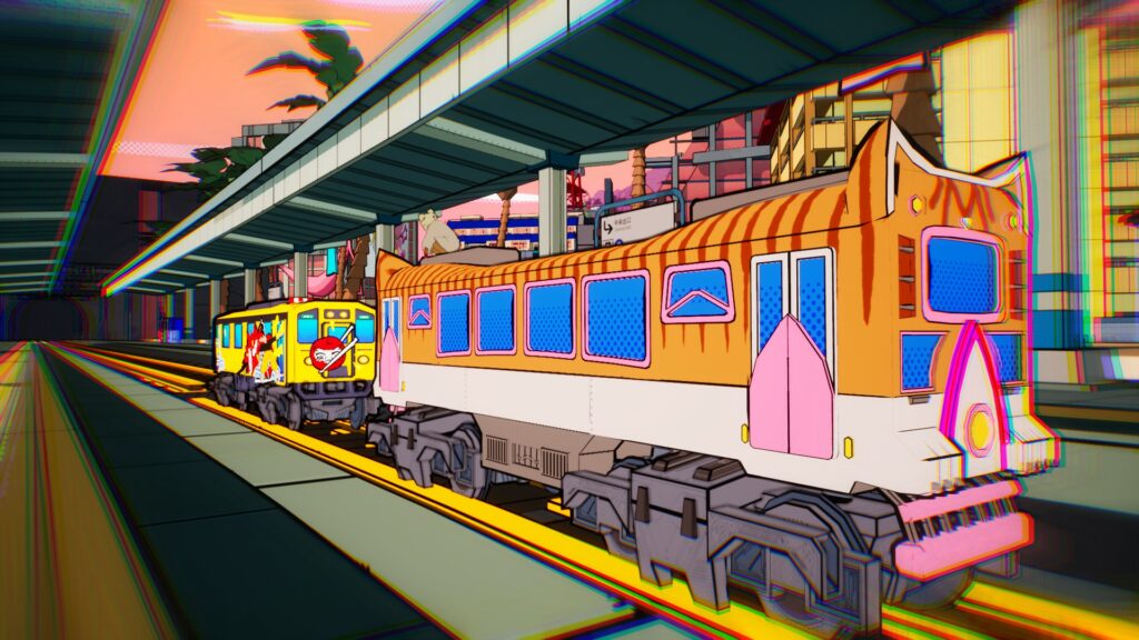 Je viens de me pencher sur Denshattack, développé par Undercoders et édité par Fireshine Games, un titre complètement barré où tu pilotes des trains qui font du skate. L’histoire se passe dans un Japon dystopique où des gangs s’affrontent lors d’une ligue de combat ferroviaire pour reprendre le contrôle des rails face à une corporation corrompue.