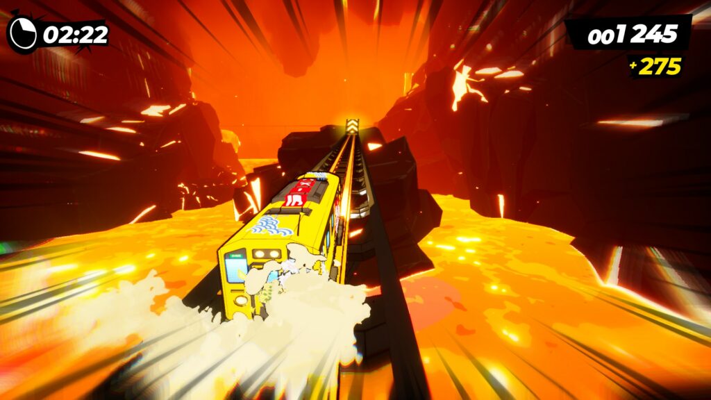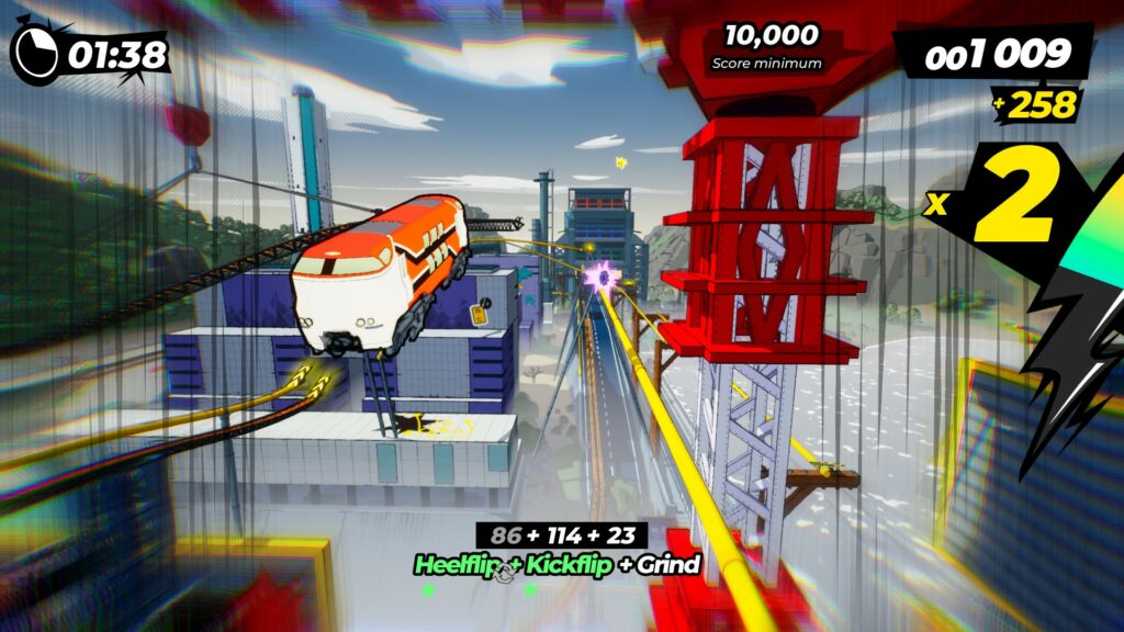 Franchement, le concept est génial : c’est un mélange entre Tony Hawk’s Pro Skater et Jet Set Radio, mais avec des locomotives. On se retrouve à enchaîner des kickflips, des grinds sur des rails improbables et des combos de folie tout en traversant des paysages variés, du sud de Kyushu jusqu’aux neiges d’Hokkaido. La sensation de vitesse est vraiment là, et voir un train faire un 360 flip au-dessus d’un précipice, c’est juste mythique.