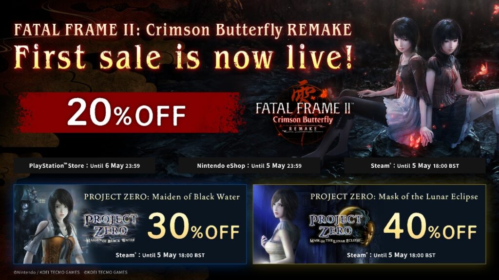 Koei Tecmo Europe vient de frapper un grand coup pour les amateurs de frissons en annonçant une promotion temporaire sur FATAL FRAME II: Crimson Butterfly REMAKE. Le titre, disponible sur PlayStation 5, Nintendo Switch 2, Xbox Series X|S et PC via Steam, profite d’une réduction intéressante quelques semaines seulement après sa sortie. Les joueurs sur Steam sont particulièrement gâtés, puisque les autres épisodes de la licence, Maiden of Black Water et Mask of the Lunar Eclipse, bénéficient également de remises pour prolonger l’angoisse.