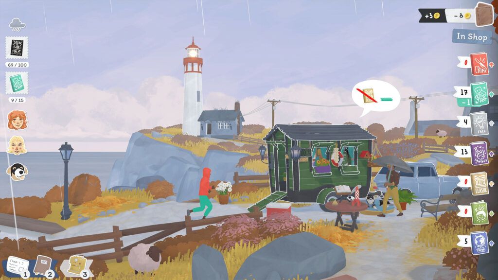 Le gameplay ne se limite pas à vendre des bouquins, car la dimension humaine est super importante à Bouquainville. Apprendre à connaître les habitants, comprendre leurs goûts littéraires et les voir revenir dans ta boutique crée un vrai sentiment d’appartenance qui manque souvent dans les jeux de gestion plus classiques.